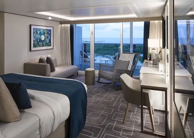| CS - Celebrity Suite 37 m² + balkón 9 m². 11/12. paluba. Max 4 osoby. Výhody Suite Retreat. | 26 668 € 6 667 € za osobu | ||